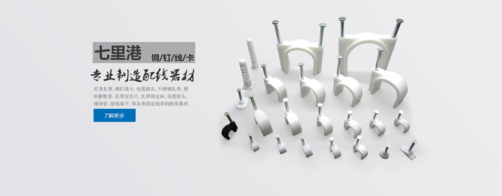 公司主要產(chǎn)品有:尼龍扎帶系列,鋼釘線卡系列,膨脹管系列,壓線帽系列,接線端子系列,